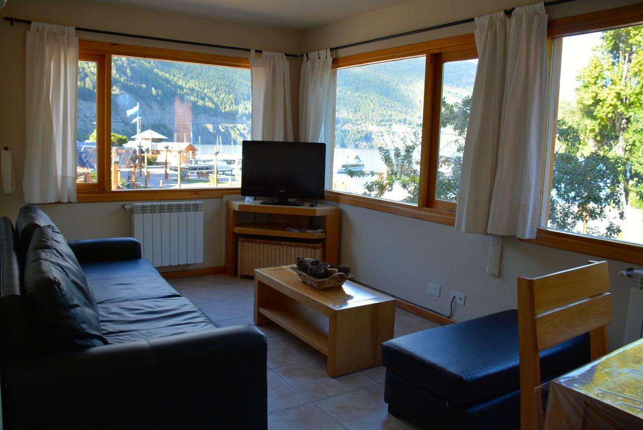 Departamento 1 dormitorio frente al Lago Lácar, lugar único con vistas al lago y a la montaña. Totalmente equipado con todos los servicios, internet, Lcd.