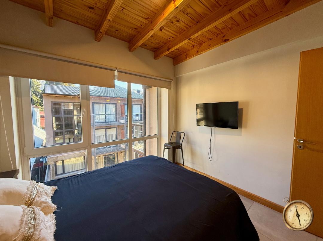 Excelente departamento en el casco céntrico de la ciudad de San Martín de los Andes. Departamento de un dormitorio en ubicado en segundo piso por escalera. Living y cocina integrada, baño completo. Dormitorio amplio con placar y baño en suite. Espacio lavadero. Ambientes luminosos. Se vende equipado. Excelente calidad de construcción Gimnasio en planta baja. Ubicado sobre la calle General Villegas al 1000, a una cuadra de la Avenida San Martin. 49 m2 mas balcon 4 m2