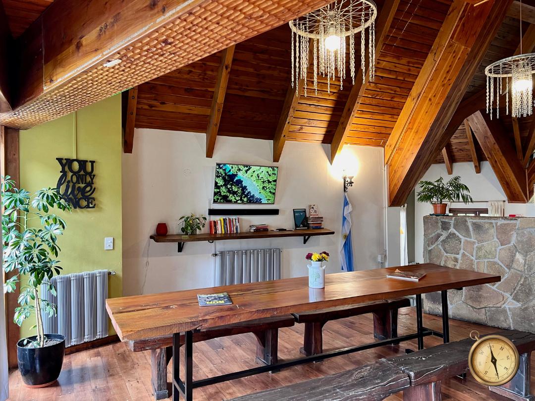 Casa con historia en la entrada del centro de San Martin de los Andes, acondicionada para funcionar como Hostel de categoría, con excelente reputación en el mercado turístico, ubicado en una zona estratégica. Un lugar único para recibir viajeros del todo el mundo. Combina diseño, confort y rentabilidad comprobada. La propiedad cuenta con amplios espacios comunes, que invitan al encuentro. Living con hogar, cocina totalmente equipada para huéspedes, comedor y hermoso jardín paralizado con parrilla. Dispone de 5 habitaciones, 3 de las cuales son para 6 personas y 2 para 4. Esta distribuida en 3 plantas. Planta baja: Living con hogar, sala de descanso, toilette, espacio de uso recreativo (bar o desayunador), deposito, y habitación para personal. Primer piso: 2 habitaciones de 6 camas cuchetas, con canastos lockers individuales y baño completo. En el mismo piso cocina totalmente equipada, lavadero y guardado de ropa blanca. Segundo / tercer piso: 3 habitaciones, 2 de las cuales son para 4 personas y otra con 6 camas cuchetas, cada una de ellas con sus respectivos lockers y balcón con sillas. En el mismo piso encontramos 2 baños completos, con ante baño y duchas. El Hostel posee un jardín totalmente parquizado, con parrilla, sillas y mesas para uso recreativo. 400 m2 en lote de 540 m2