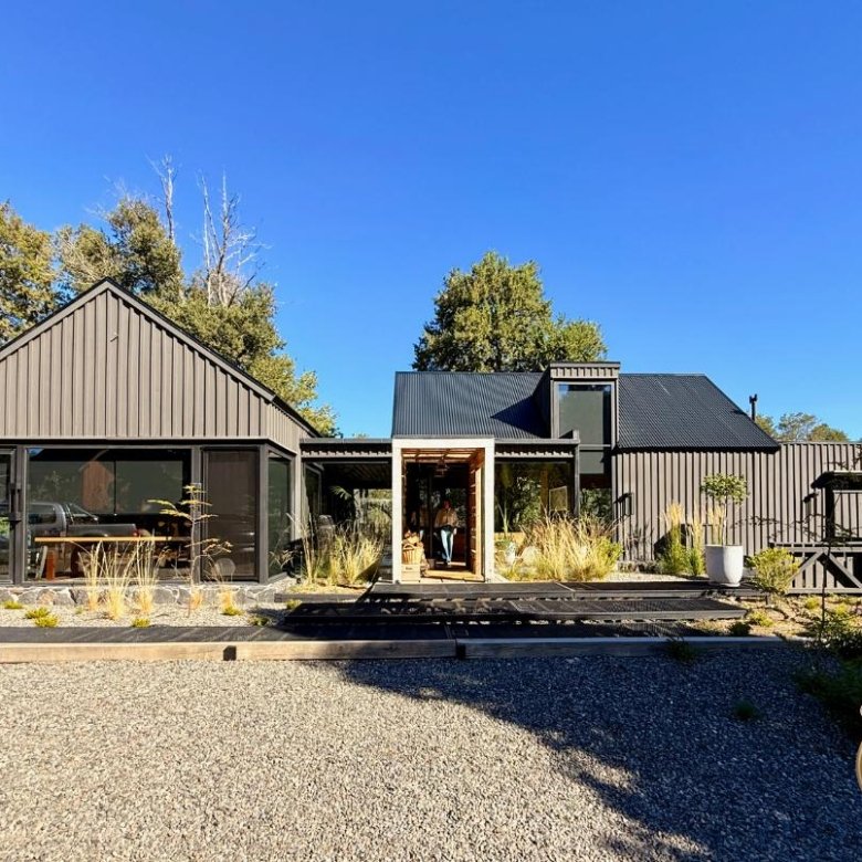 Desarrollada íntegramente en una sola planta, la propiedad ofrece un amplio hall de entrada que da paso a un luminoso living-comedor con grandes ventanales y vistas abiertas al Cerro Chapelco, con salida a un generoso deck rodeado de bosque nativo preparado para disfrutar. Tienen una amplia y luminosa cocina, integrada al comedor, separada por barra o mesa alta, se conecta con un sector exterior con horno.